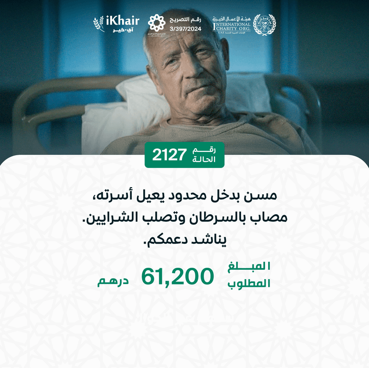 مُسن أتعبته آلام مرض السرطان وبحاجة لعلاج يُخفف معاناته، الأسرة شبه معدومة الدخل وليس له بعد الله