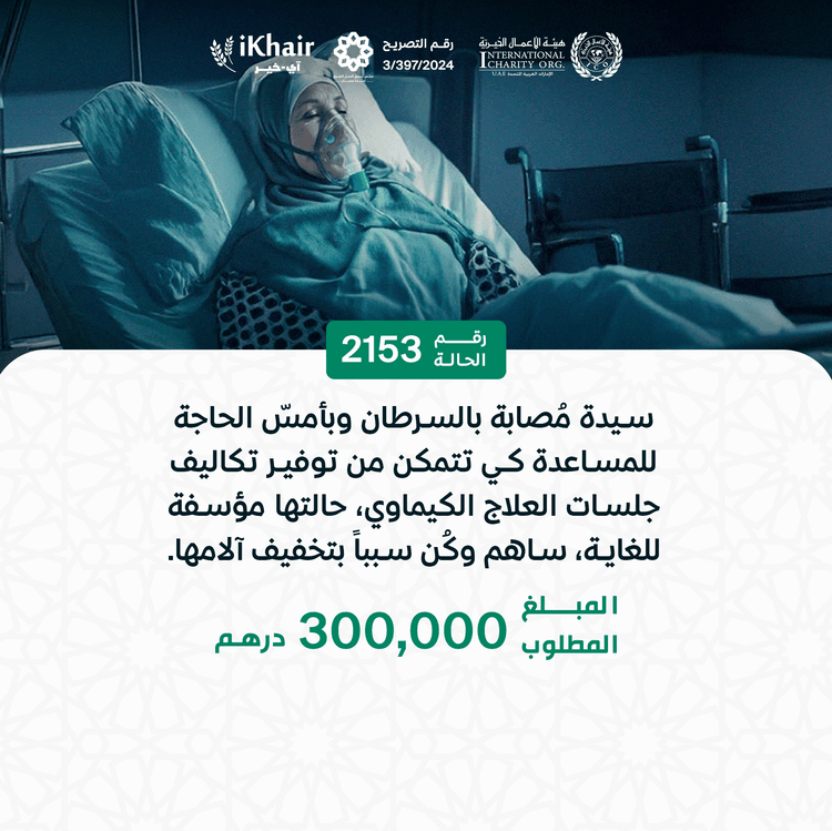 مريضة سرطان بحالة حرجة، وحالتها الطبيّة تزداد سوءاً بسبب تأخر العلاج، الأب مُسن ومعيل لأسرة كبيرة